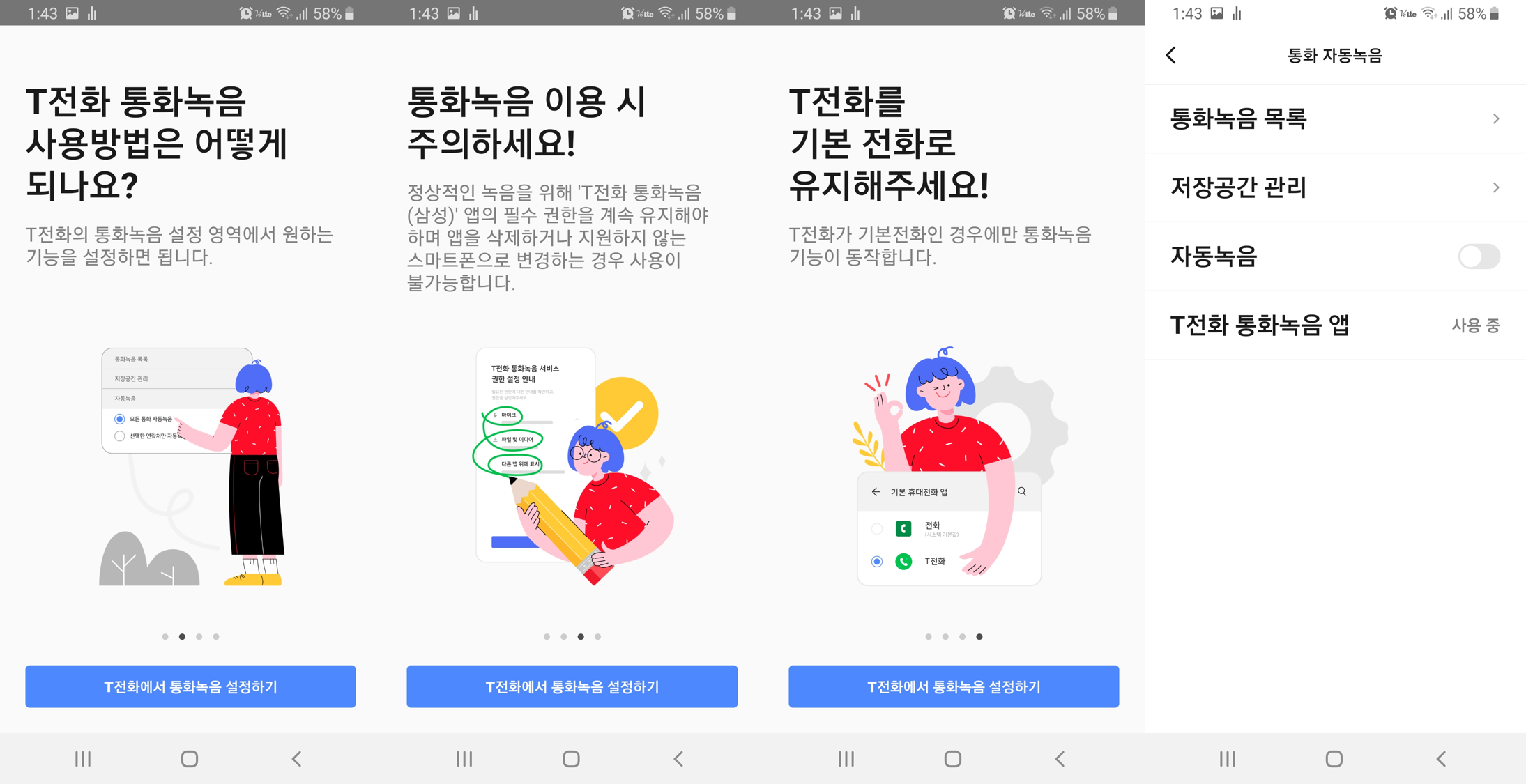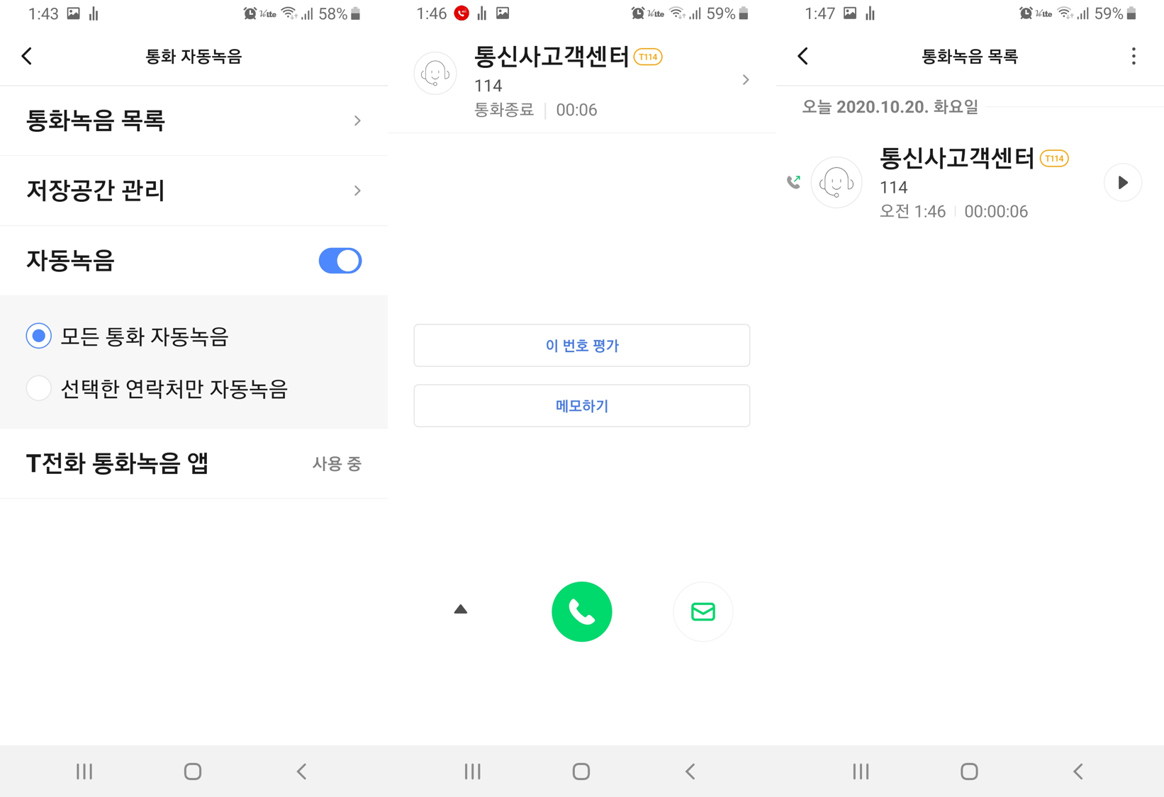 저는 부모님 전화기에 T전화 통화녹음을 설치해드렸습니다.