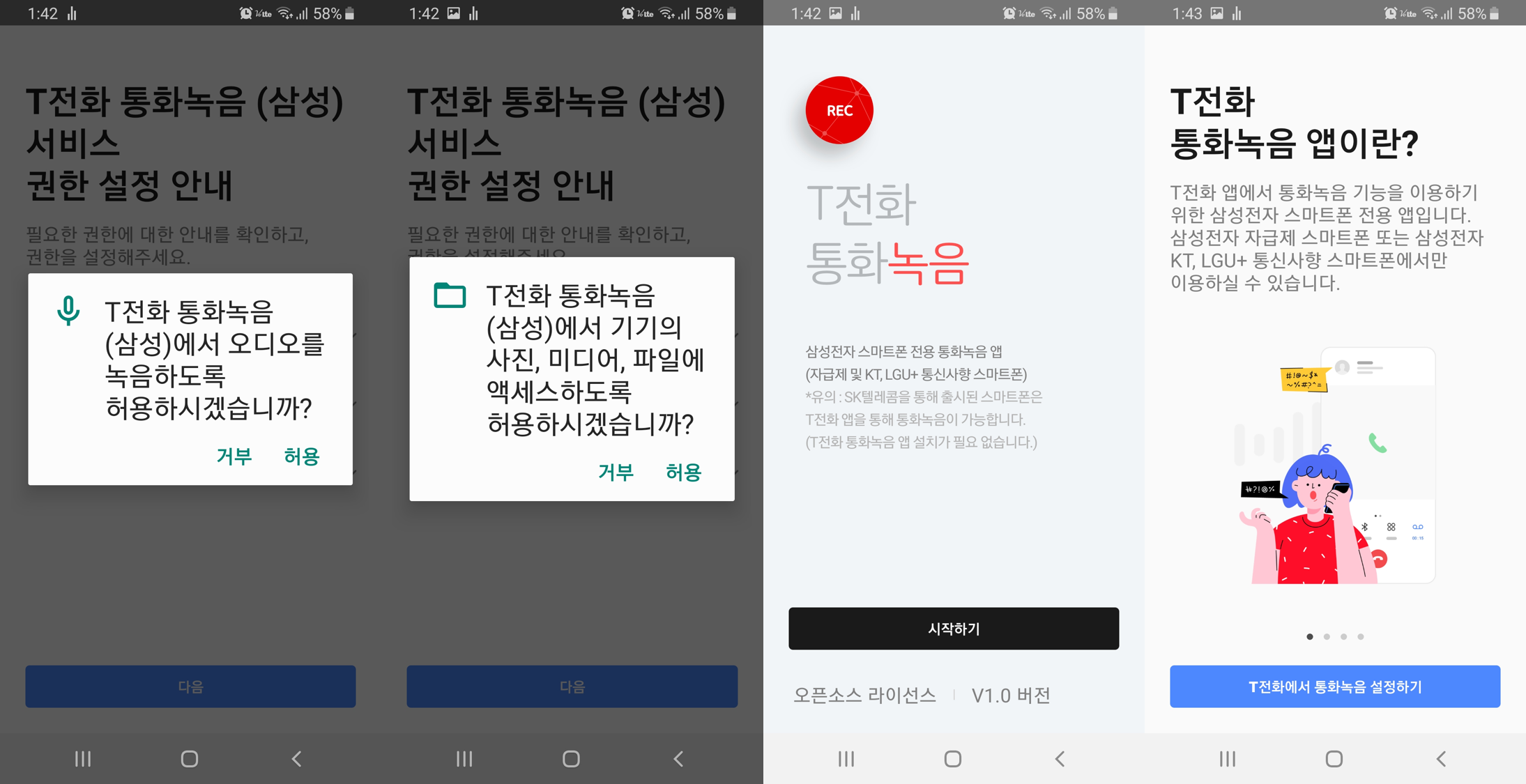 해당 사유로 그동안 SKT용 단말기를 제외한 다른 기기에서 T전화 통화녹음 기능이 제공되지 않았습니다.
