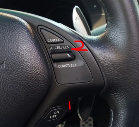2. 원하는 속도로 엑셀을 밟은 후에 2번 Accel/RES 버튼쪽으로 스위치를 올려서 속도를 고정시킨다.
