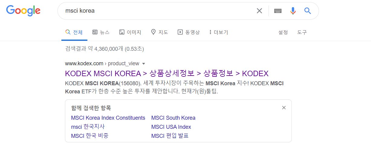 1. 구글에 msci korea라고 입력