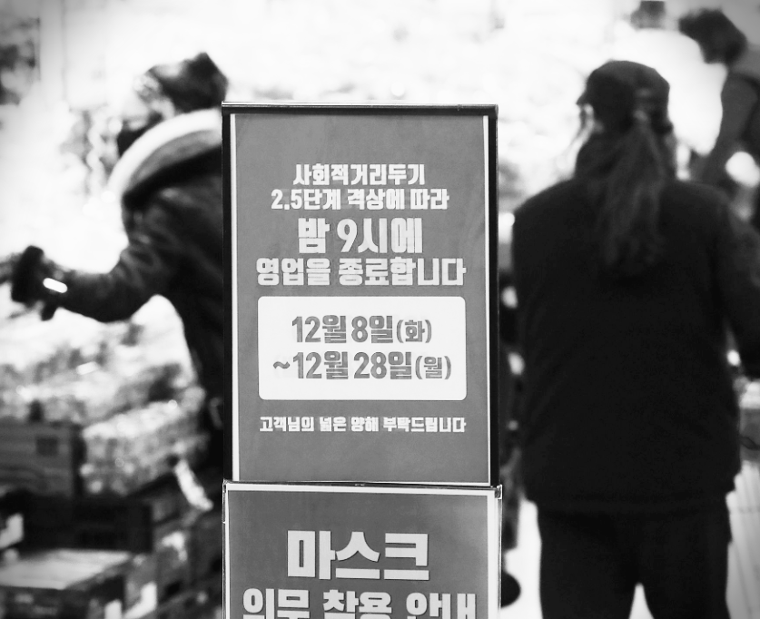 일주일간 하루 평균 지역 감염 확진자수가 800명 이상인 경우, 전국을 대상으로 사회적 거리두기 3단계가 시행된다. 금일(20년 12월 13일 기준) 추가 확진자수는 1,030명이며 그 증가세가 가파르게 증가하고 있다.