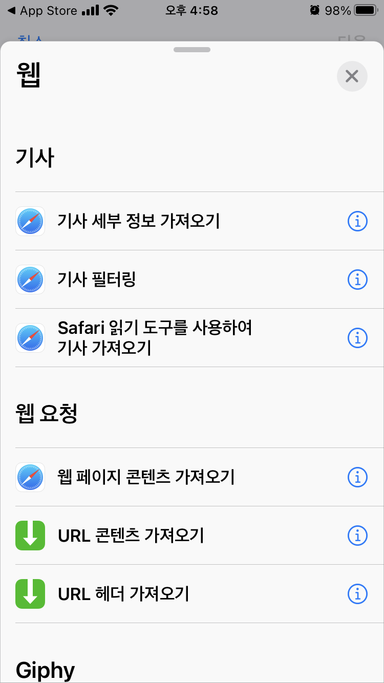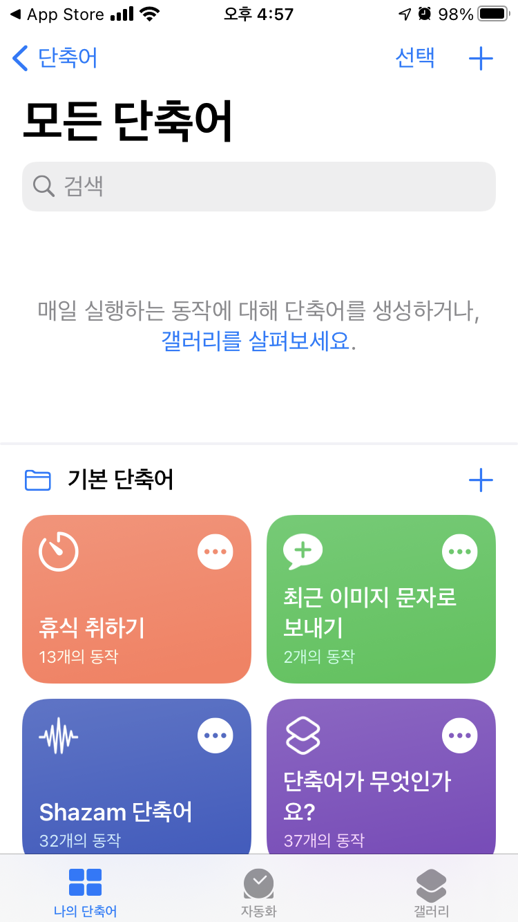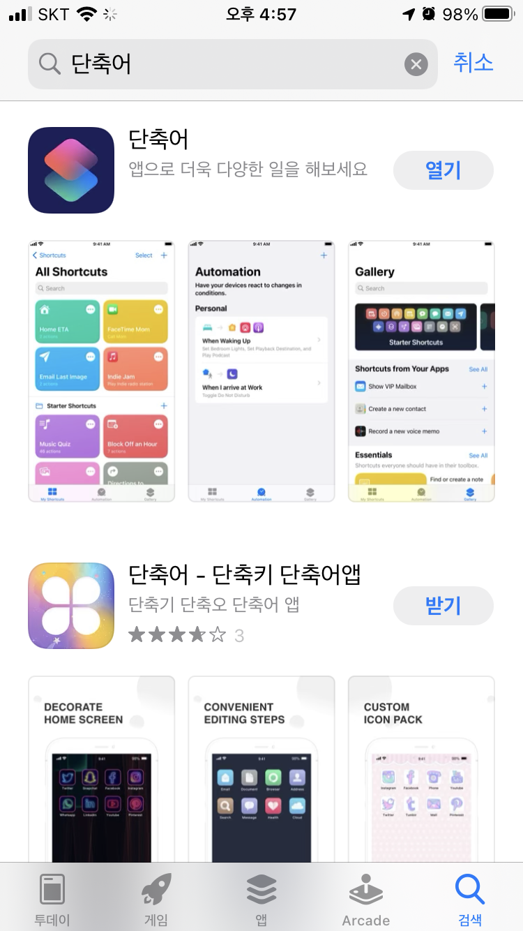 앱스토어에서 단축어를 검색 후 다운로드하여 엽니다.