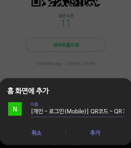 홈 화면> 홈 화면에추가 추가버튼 터치