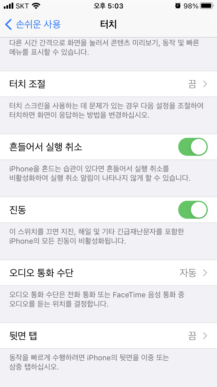 (뒷면 탭 기능은 IOS14 이상 가능)
