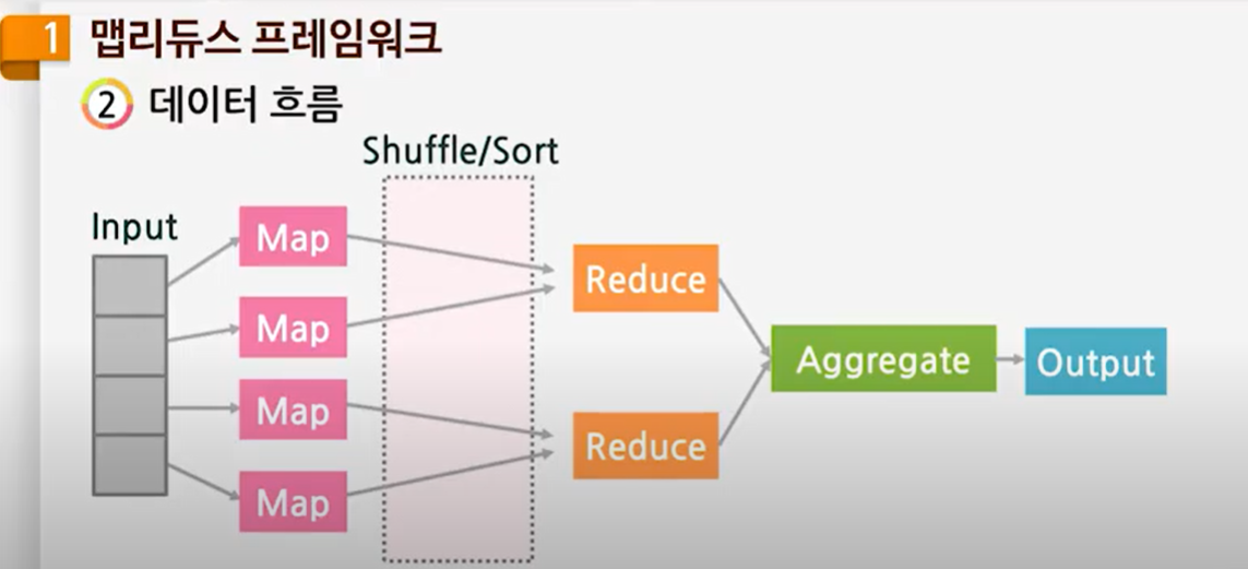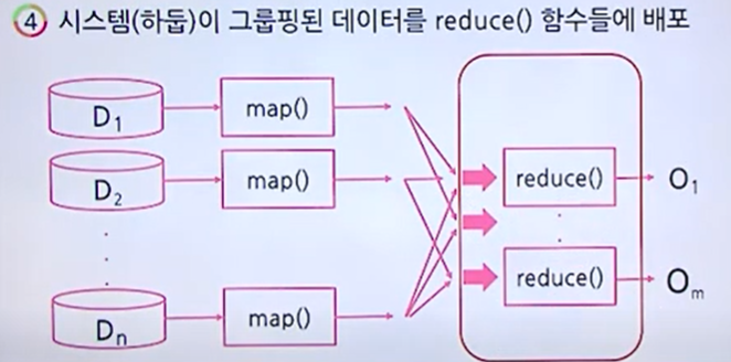 셔플(shuffle and sort): 맵 단계에서 나온 중간 결과를 해당 리듀스 함수에 전달하는 단계
