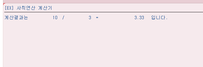 " / 연산자 중 분모에 해당하는 값이 0일 경우 오류 메시지 출력