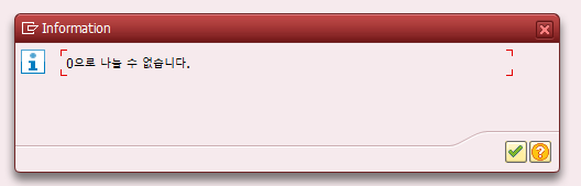 MESSAGE I000(OO) WITH '0으로 나눌 수 없습니다.' .